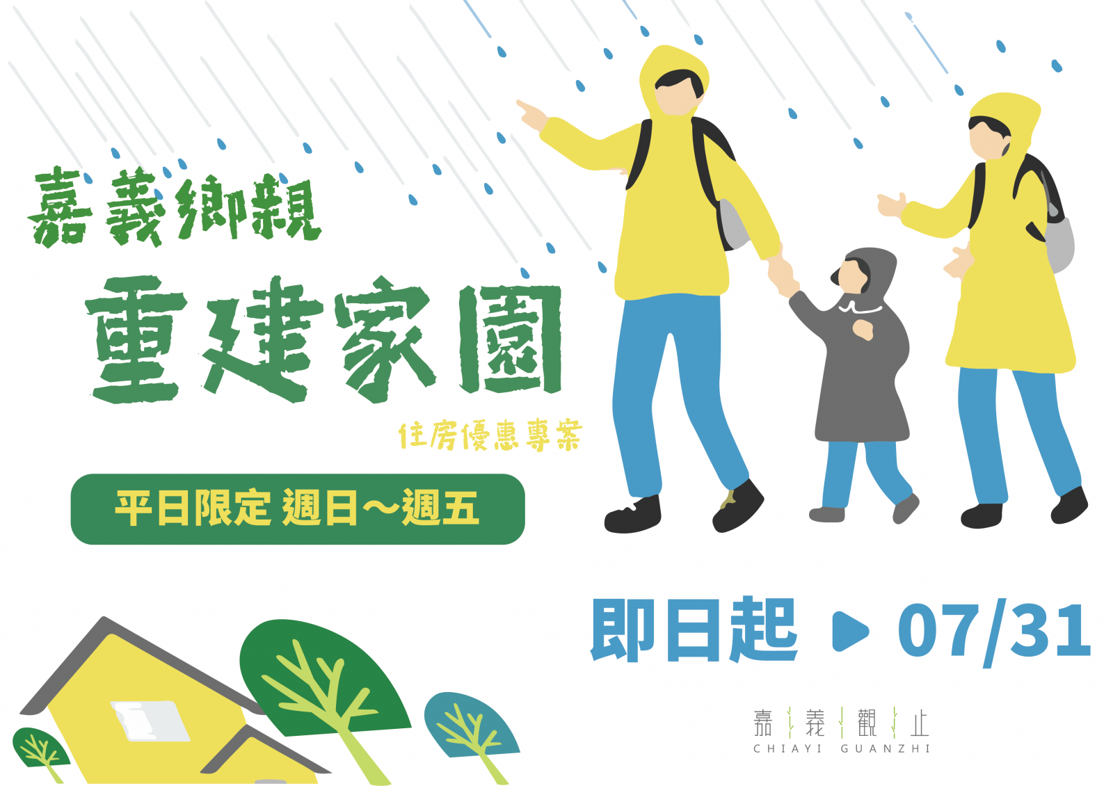 近期颱風災情不斷,再大的風雨也打不散嘉義人的牽絆,為此嘉義觀止推出最優惠的價格為嘉義縣市鄉親相挺